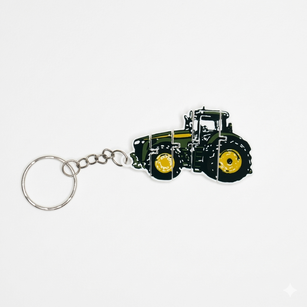 Mały, ale charakterystyczny – brelok inspirowany nowoczesnym ciągnikiem rolniczym klasy premium, który przyciąga uwagę każdego fana maszyn.